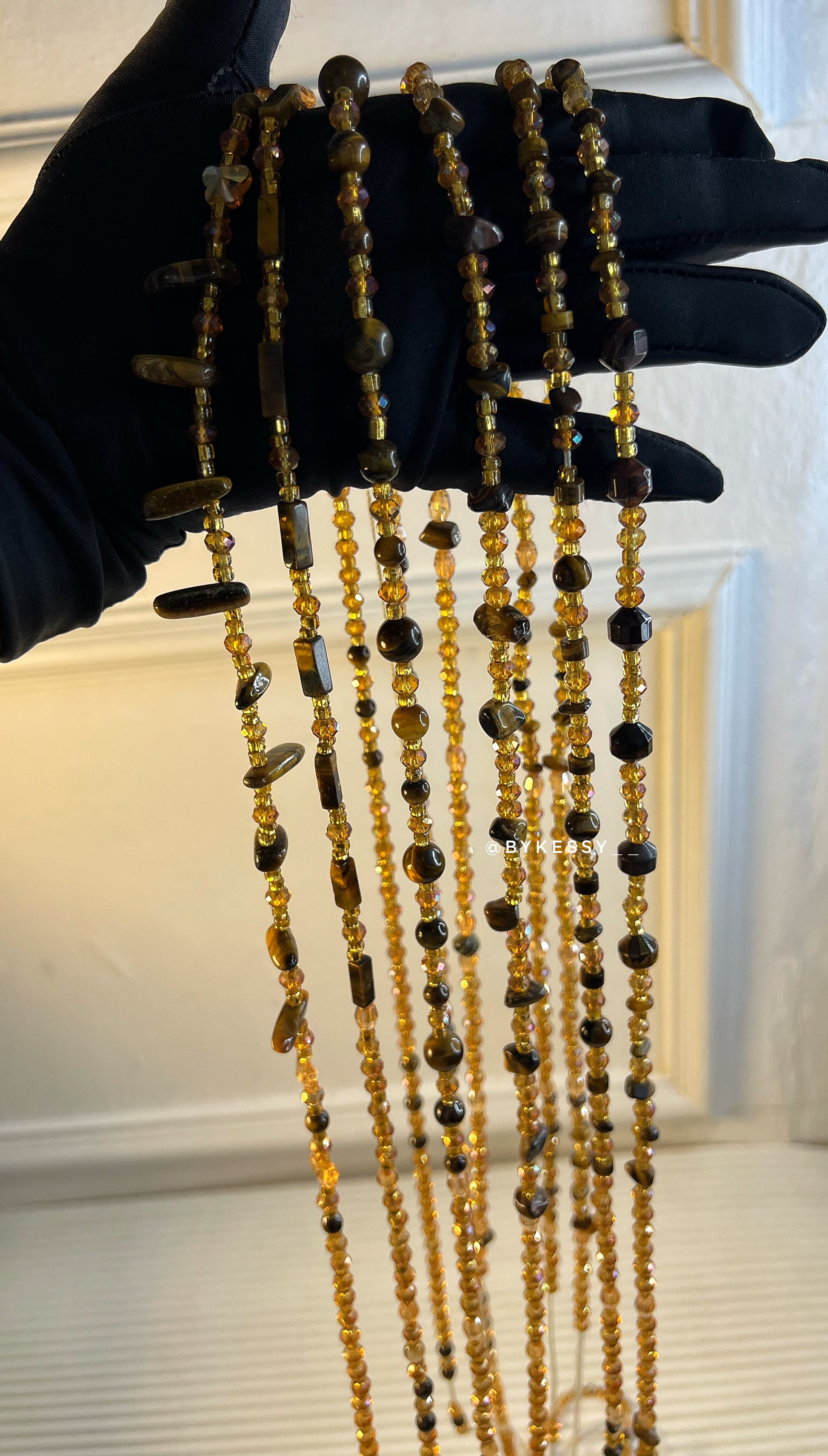 Tiger Eye Healing Crystal Waist Beads – For Confidence, Protection, Clear Vision, Focus, Overcoming Fear & Weight Loss Tracking