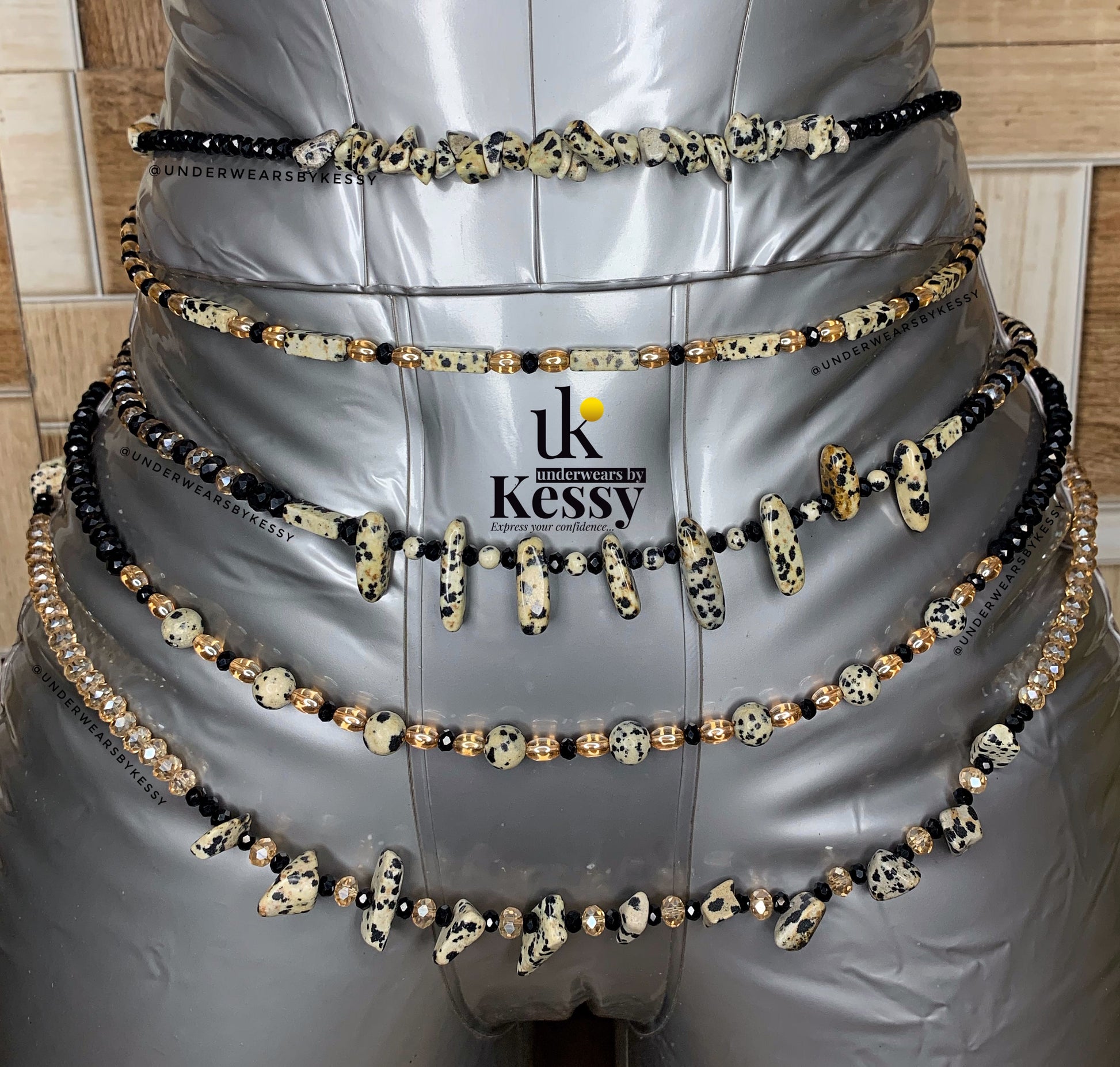 Embrace lightness and emotional freedom with our set of 5 handcrafted Dalmatian Jasper healing crystal waist beads. Known as the stone of joy, Dalmatian Jasper carries a playful, childlike energy that encourages emotional release and helps you reconnect with your inner light. It’s the perfect choice for women seeking happiness, balance, and energetic cleansing.