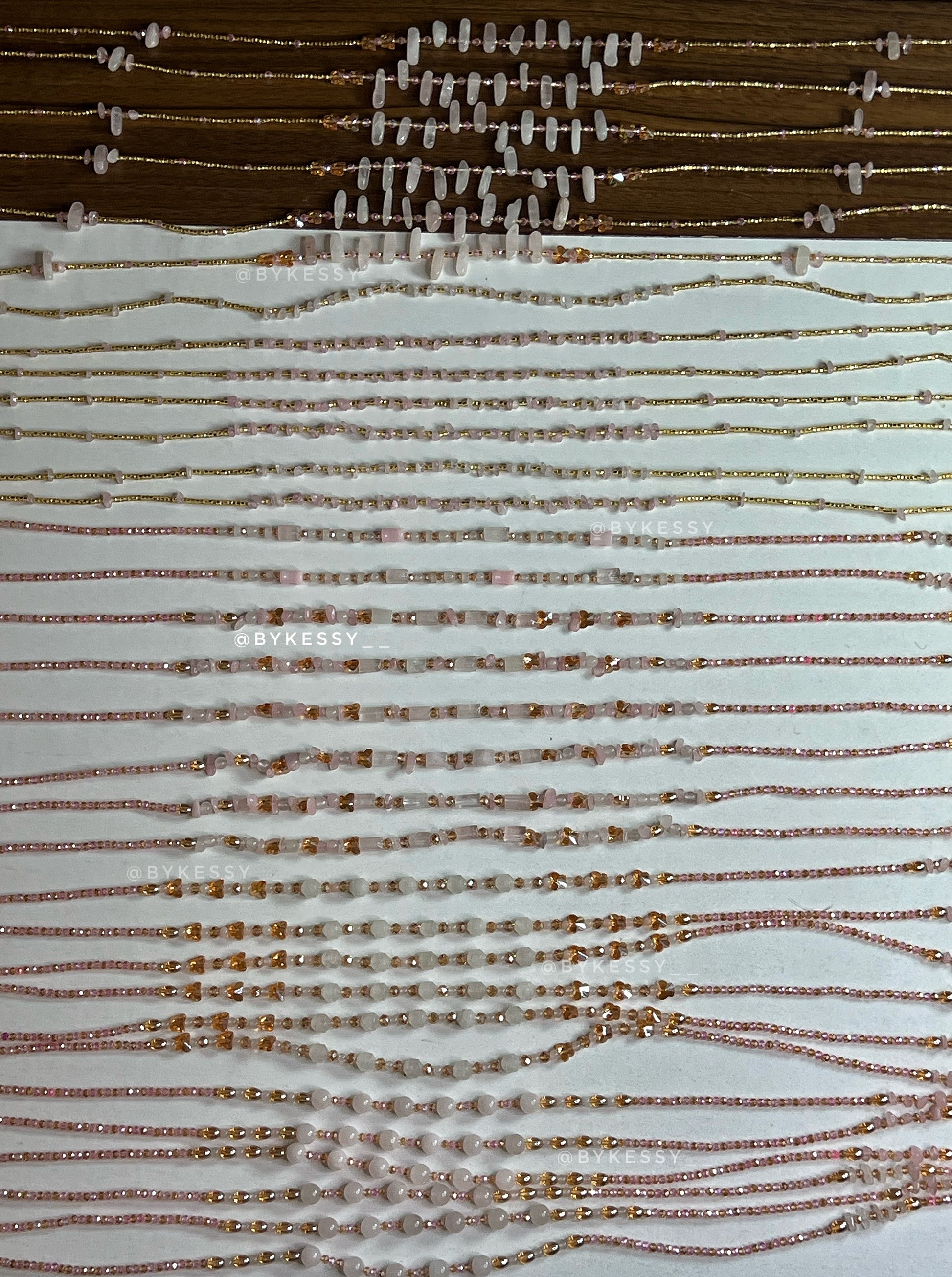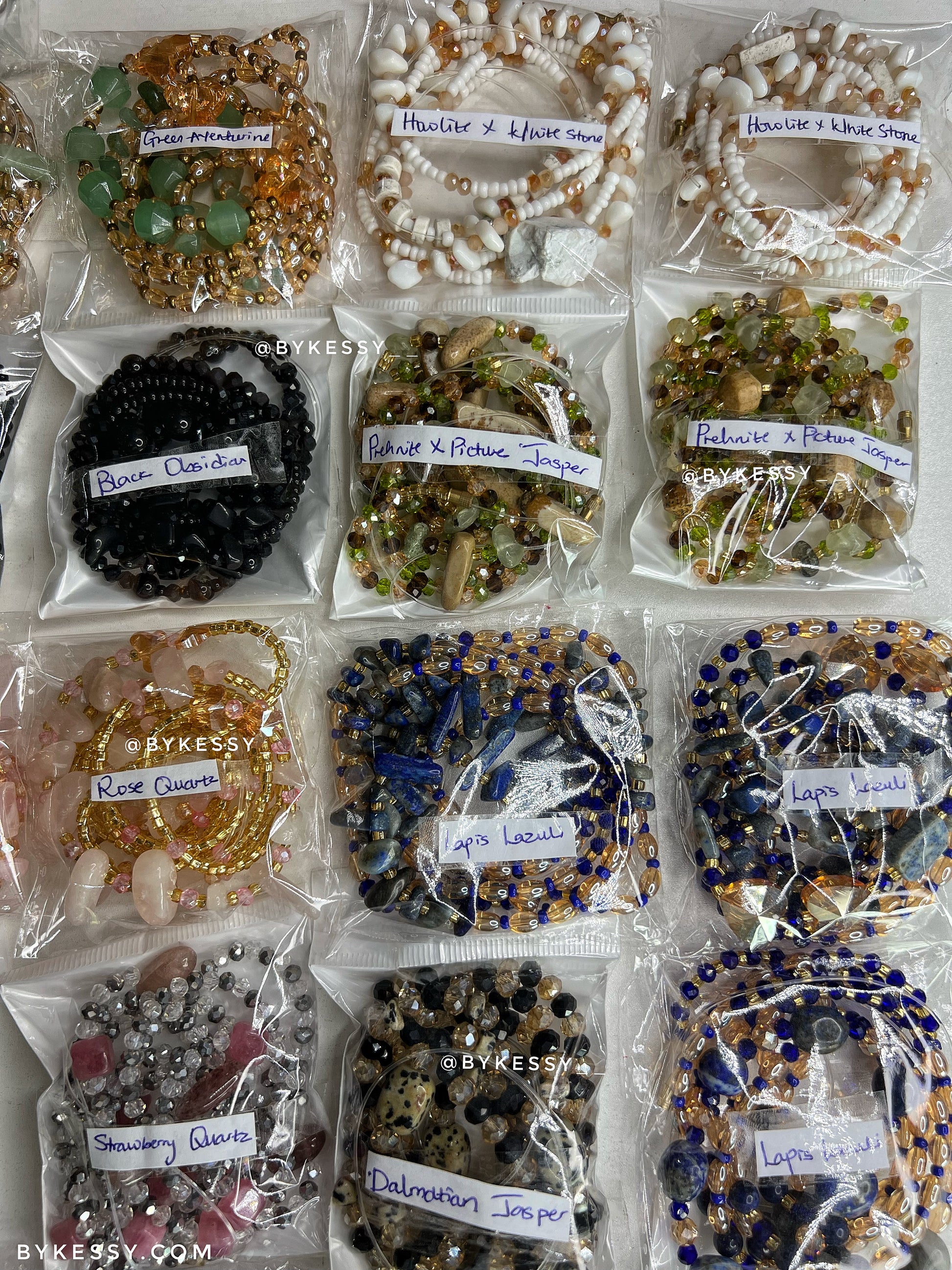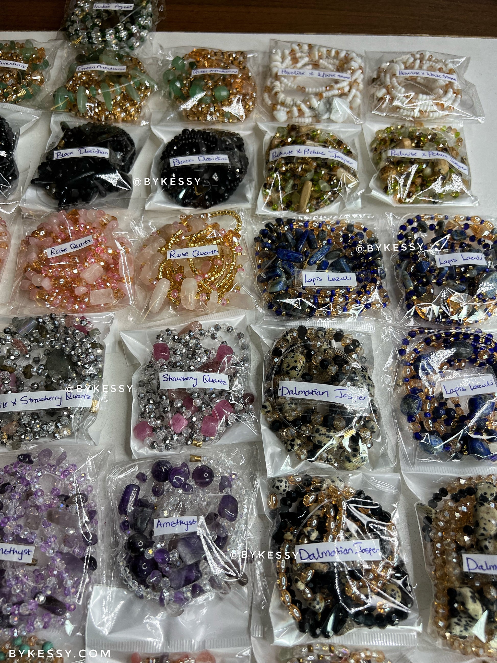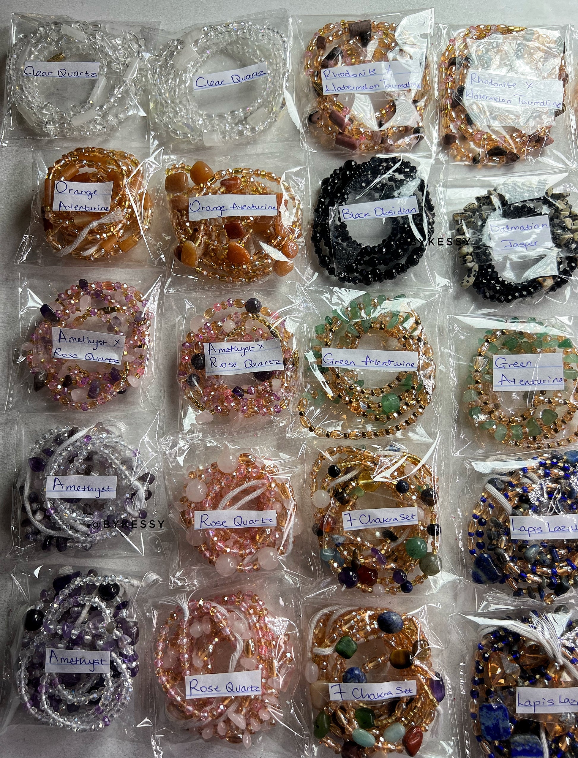 This wholesale listing features 20 to 1,000 strands of handcrafted gemstone waist beads made with crystals believed to support love, protection, abundance, fertility, peace, and personal growth.