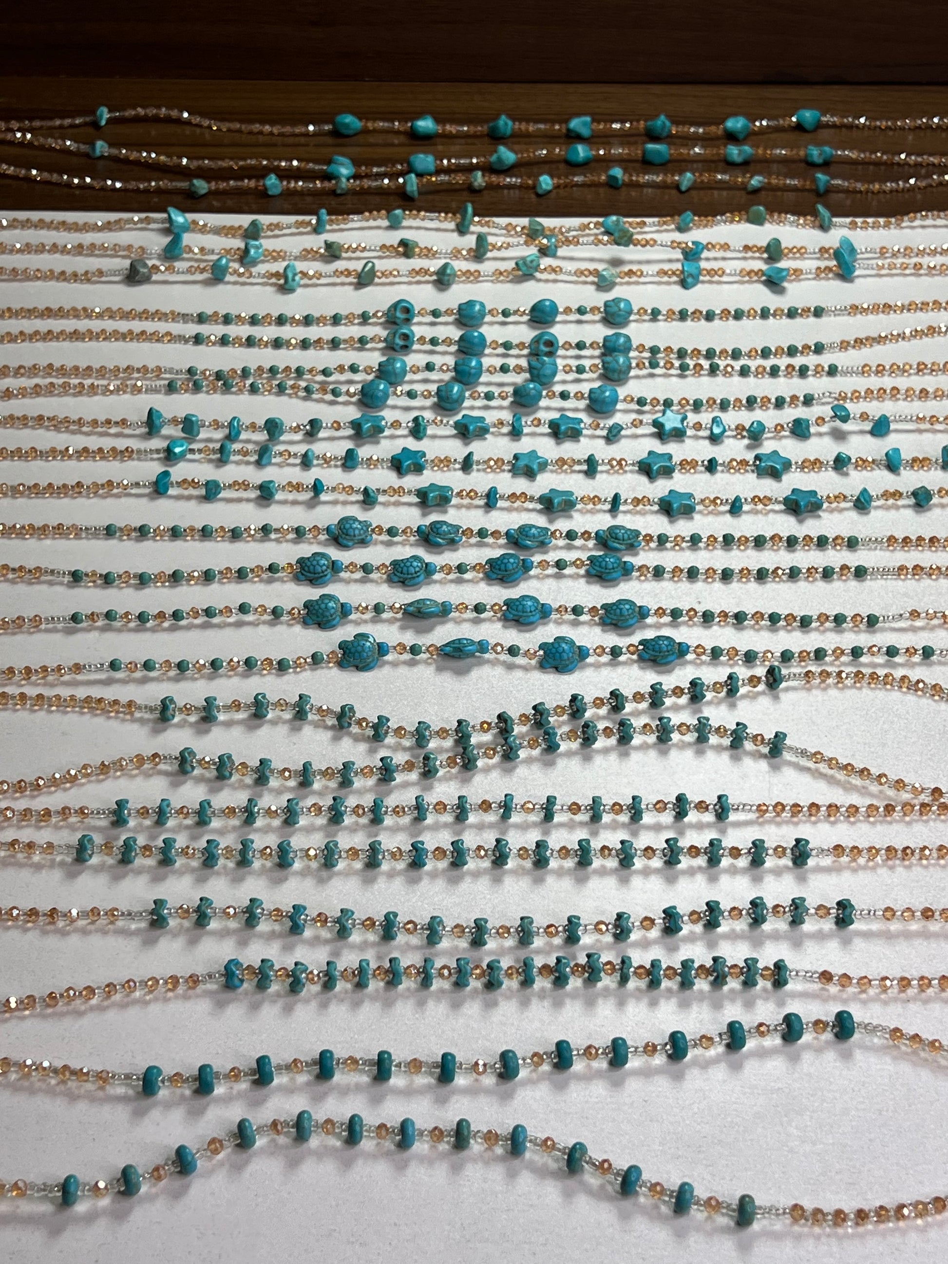 Each strand measures approximately 45 – 50 inches and is available in both tie-on and adjustable clasp styles — perfect for boutiques, resellers, spiritual brands, or personal wear.